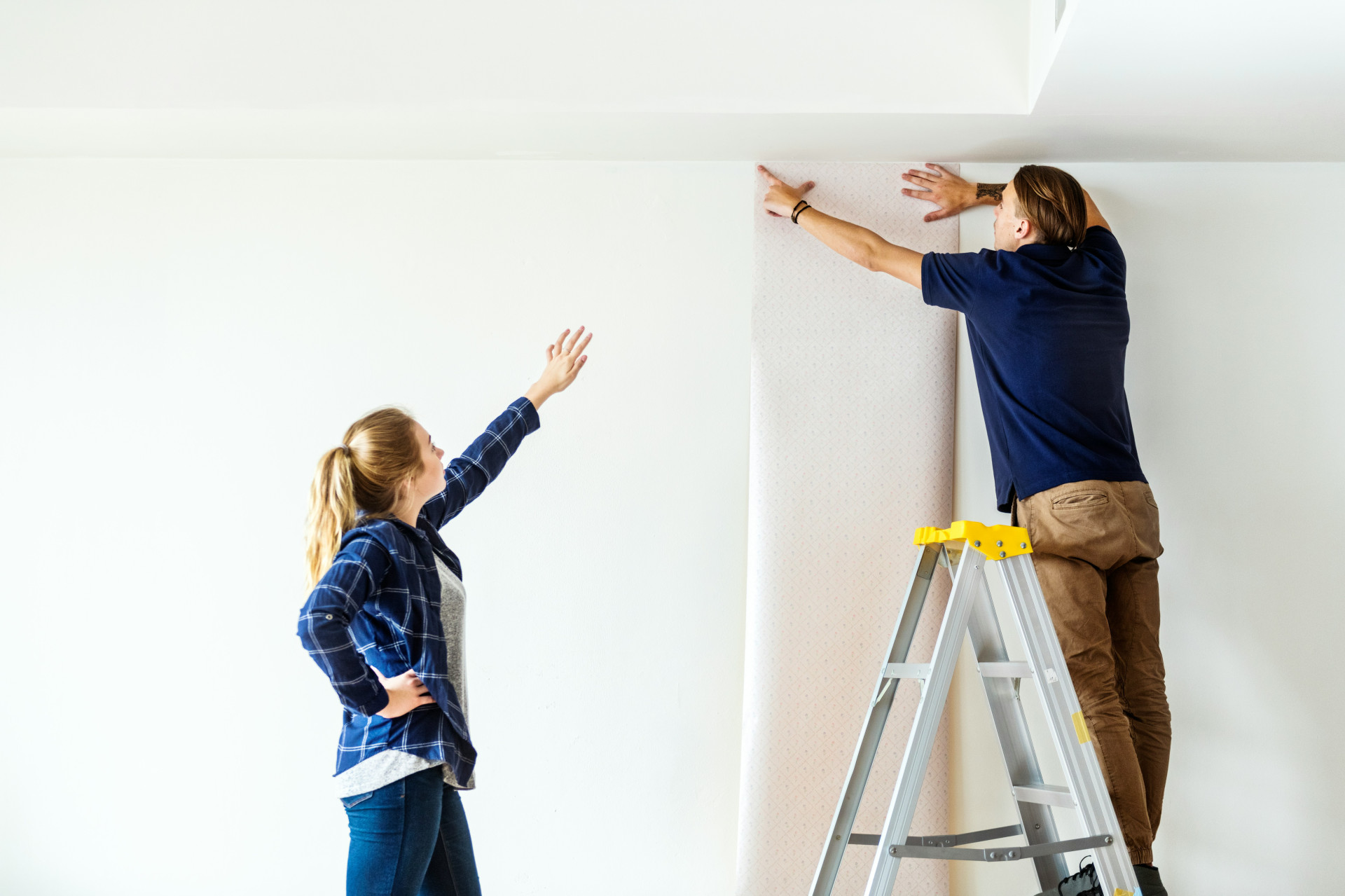 Inden du går i gang, skal du rydde så meget som muligt ud af rummet. Flyt møbler væk fra væggene, og dæk dem til med plast eller gamle lagner. Gulvet bør dækkes med afdækningspap eller malerfilt, så du undgår pletter og stænk.